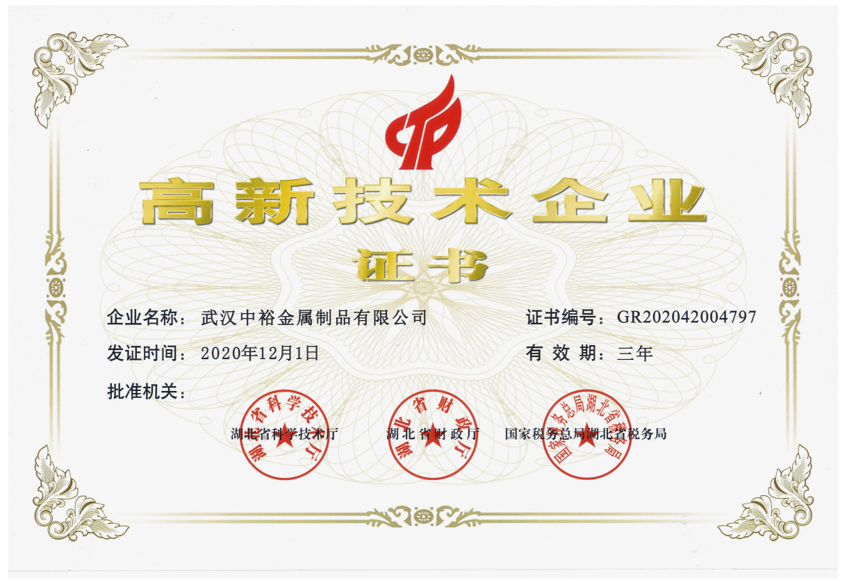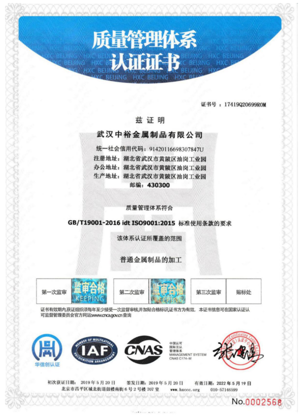 武漢中裕金屬制品有限公司(以下簡(jiǎn)稱公司)成立于1996年8月,民營(yíng)私人獨(dú)資企業(yè)。2010年8月投資1800余萬元,在前川油崗工業(yè)園征地20畝,新建5000平方米的生產(chǎn)車間和1100平方米的辦公大樓,2011年8月全部峻工投入使用。